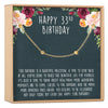 33rd Birthday Quote: This birthday is a beautiful milestone, a time to look back at all you’ve done to build this beautiful life for yourself. It’s also a time to think about how many more wonderful moments are to come. Cheers to this birthday, and the many more amazing ones ahead. You deserve to be celebrated not only today, but every day. Happy 33rd Birthday!