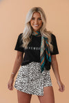 Leopard Button Overlap Denim Shorts