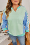 Plus Size Floral Patchwork Long Sleeve V-Neck Top