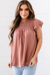 Polka Dot Smocked Flutter Sleeve Blouse